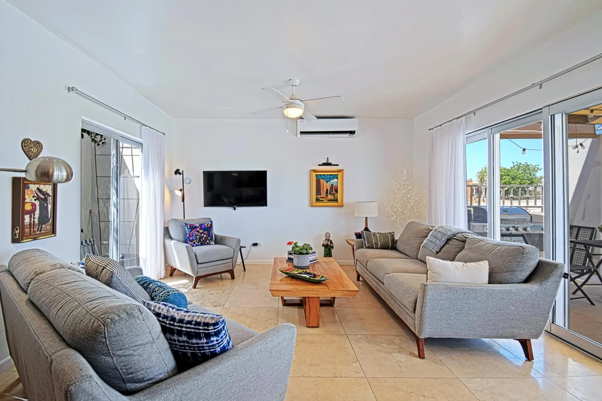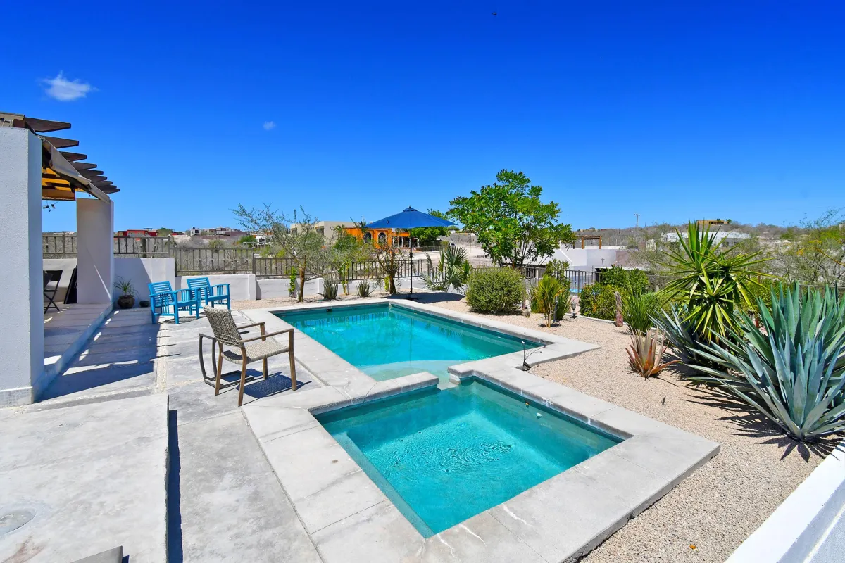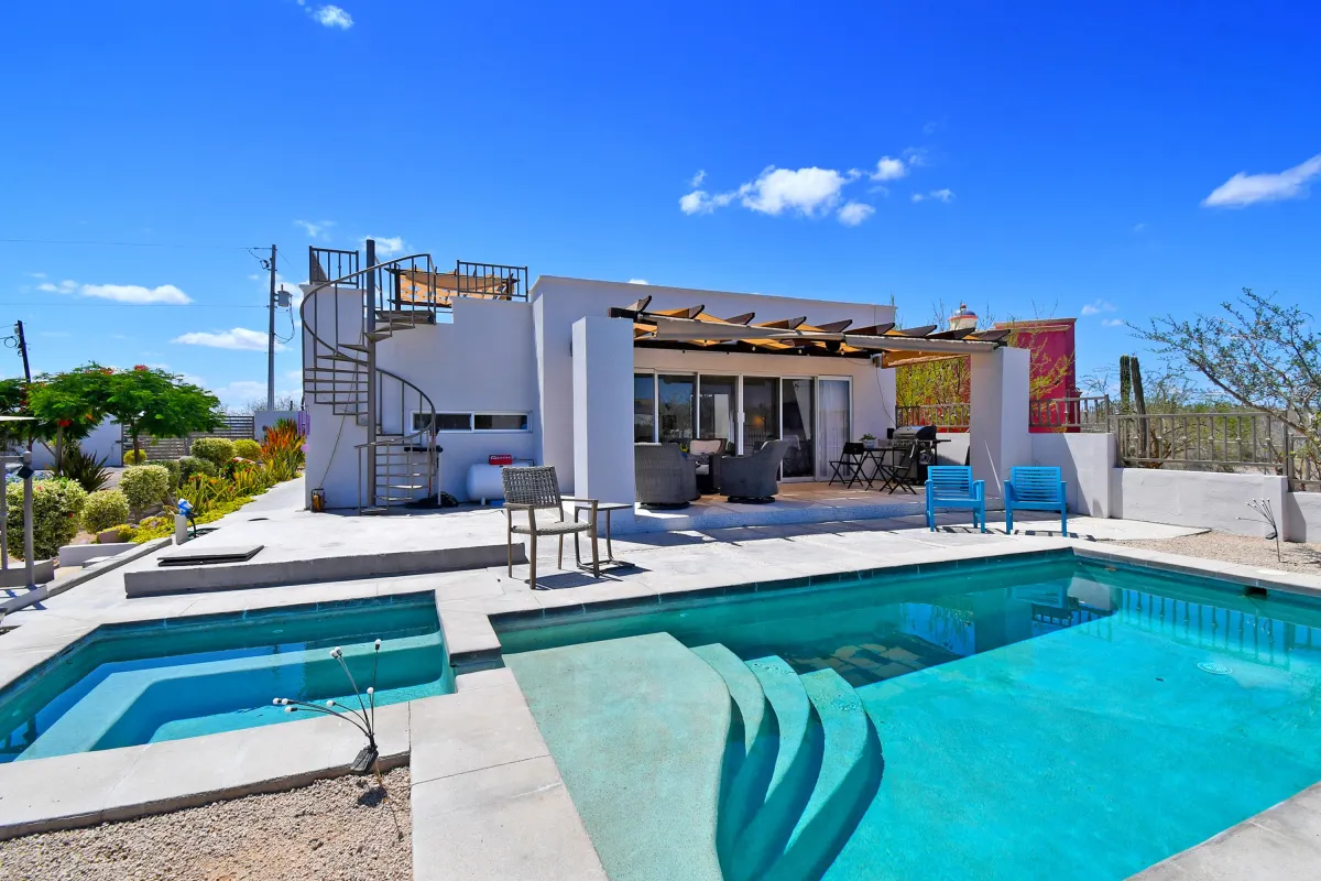 Welcome to Hermosa Casa Mathilde, a fully furnished 3-bedroom, 2.5-bath dream home in El Centenario. This beautifully designed residence blends modern comfort with Baja charm, featuring open-concept living, a stylish kitchen perfect for entertaining, and a serene master suite with a walk-through closet and ensuite bath. Two additional bedrooms offer flexibility for guests, family, or a home office. Step outside to your fully landscaped 1051m² lot, complete with a sparkling heated pool and inviting outdoor spaces. Enjoy breathtaking sunsets and mountain views from the rooftop terrace. With elegant finishes, spacious interiors, and turnkey convenience, this home is perfect for full-time living, a vacation retreat, or a smart investment in La Paz.